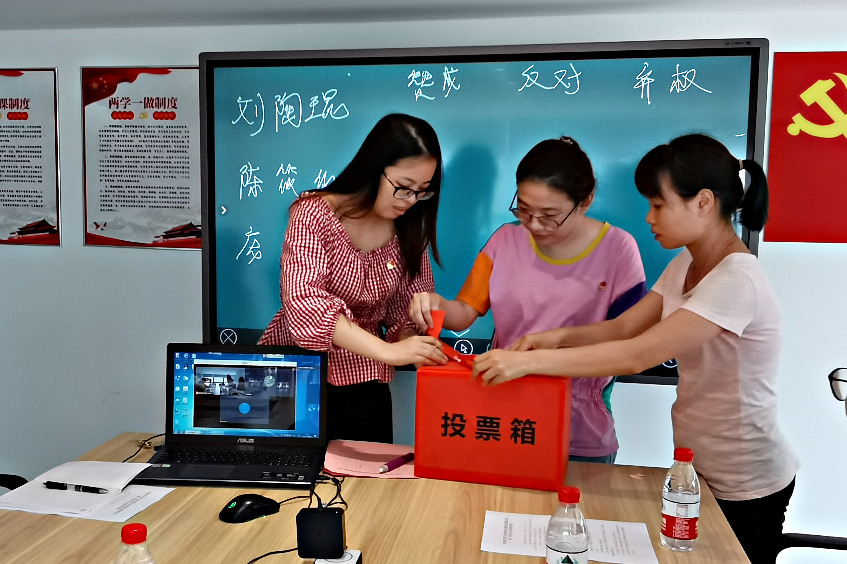成立大會上,蟠龍社區黨支部副書記許玉君同志宣讀了良慶鎮黨委《關于成立中國共產黨廣西方略專業機構支部委員會的批復》,并由與會黨員通過無記名投票方式,選舉產生方略專業機構支部委員會第一屆委員,劉陶琨、陳筱華、龐子珊三位同志當選。隨后,在經進一步選舉明確委員分工之后,新當選支部書記劉陶琨同志作了表態發言。
