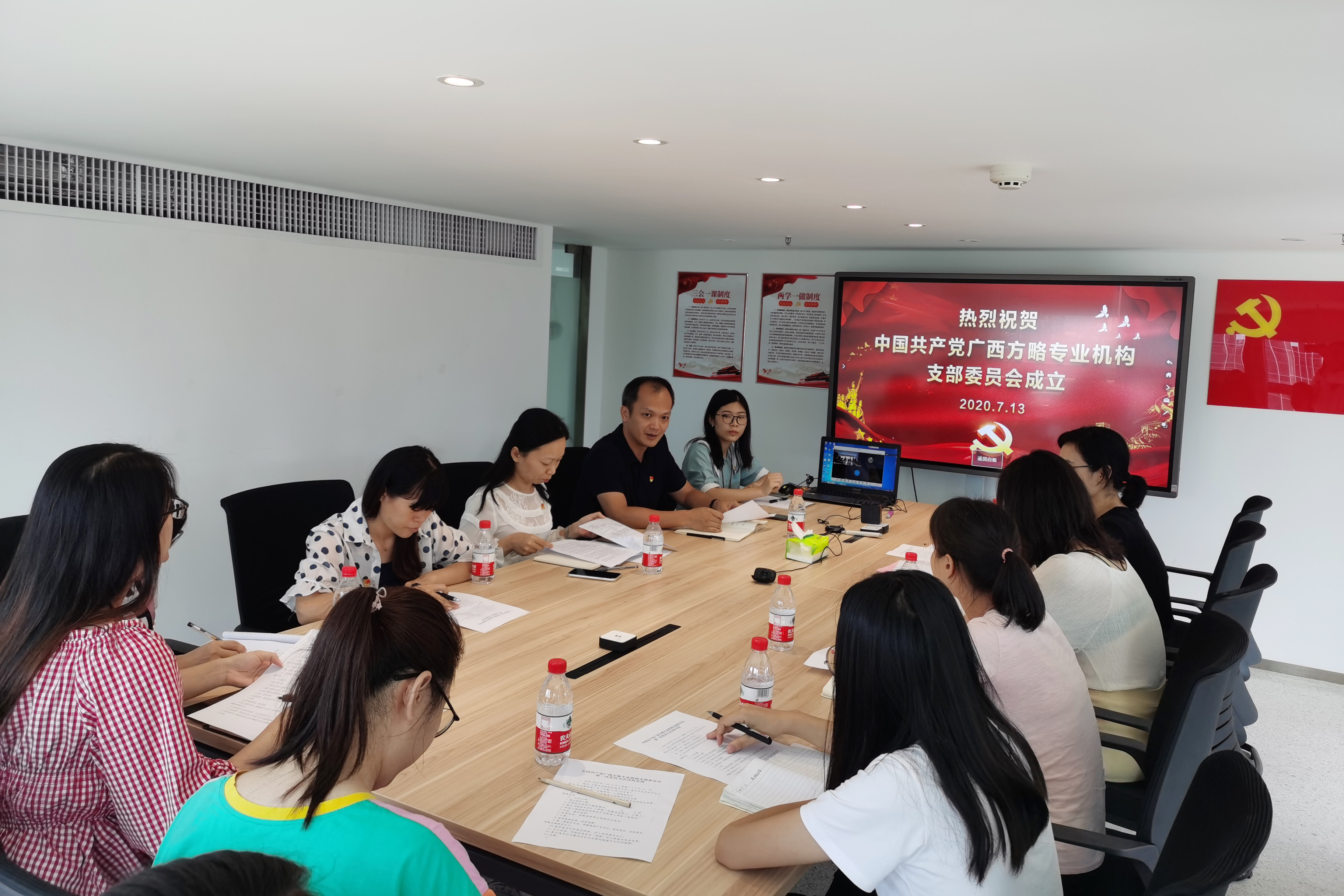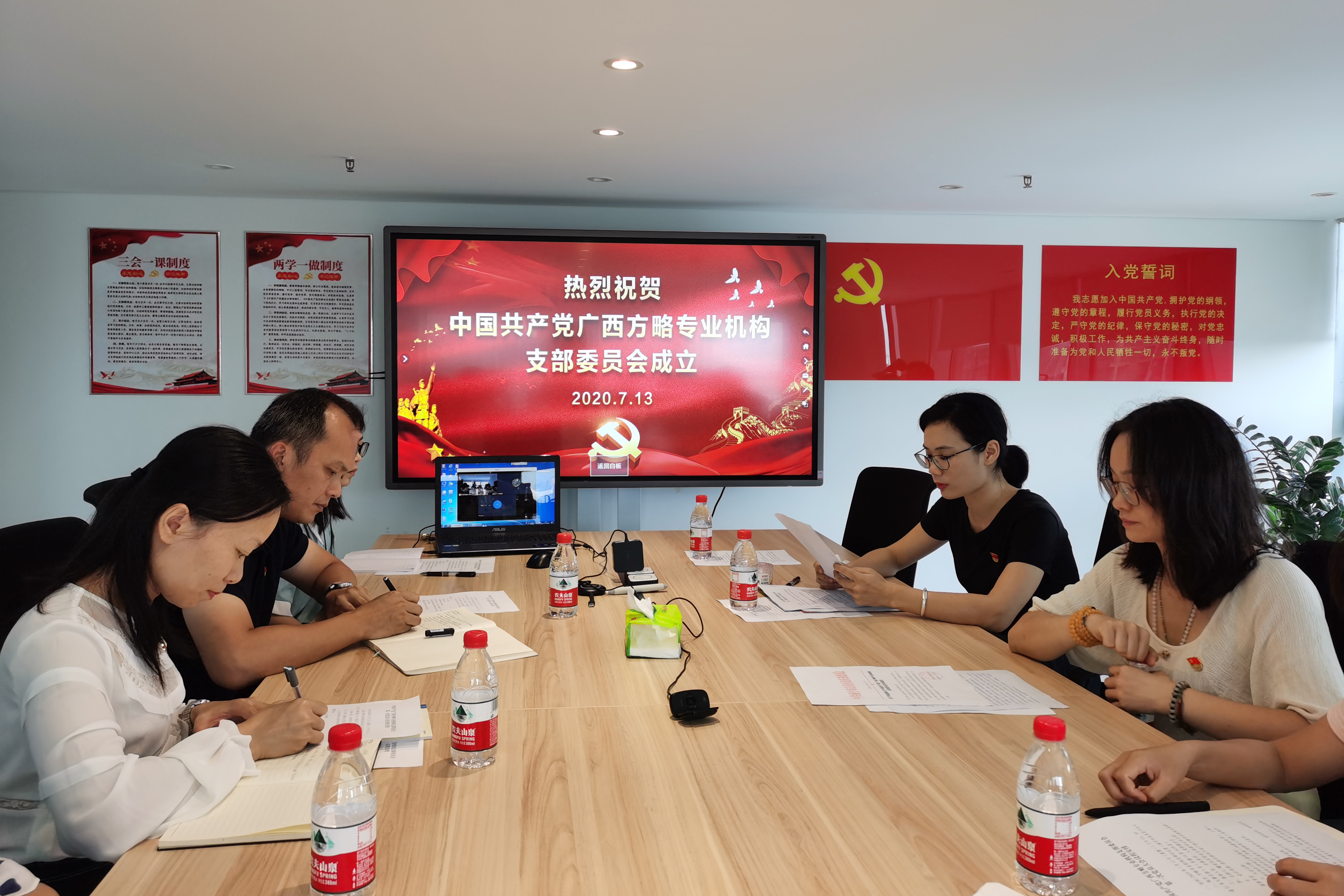 2020年7月13日,在上級黨組織的指導和大力支持下,中國共產黨廣西方略專業機構支部委員會第一次黨員大會在方略南寧總部順利舉行。中共良慶區蟠龍社區黨支部劉雁琳書記、許玉君副書記專程到會指導,與廣西方略專業機構14名黨員同志共同見證這一歷史性時刻。